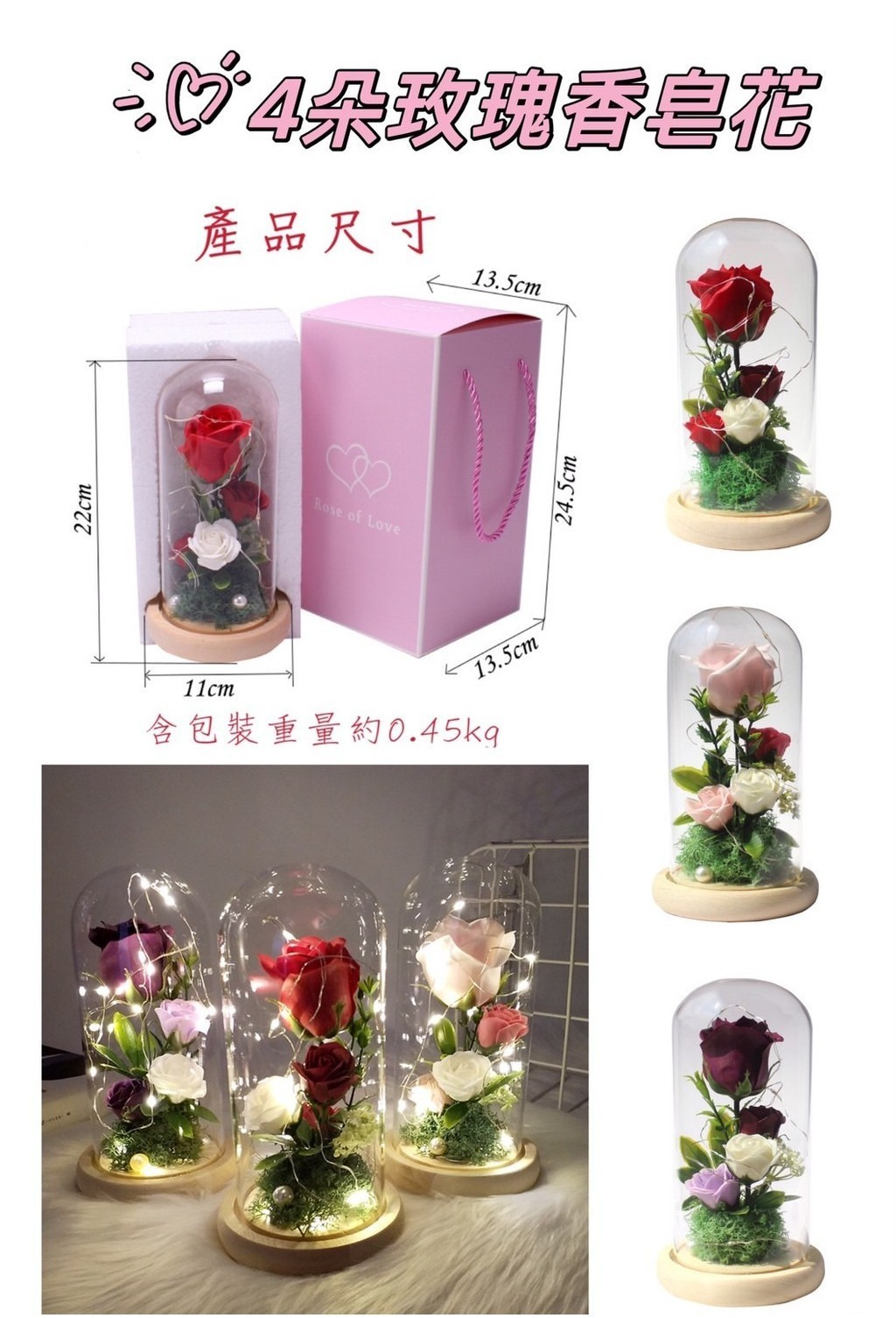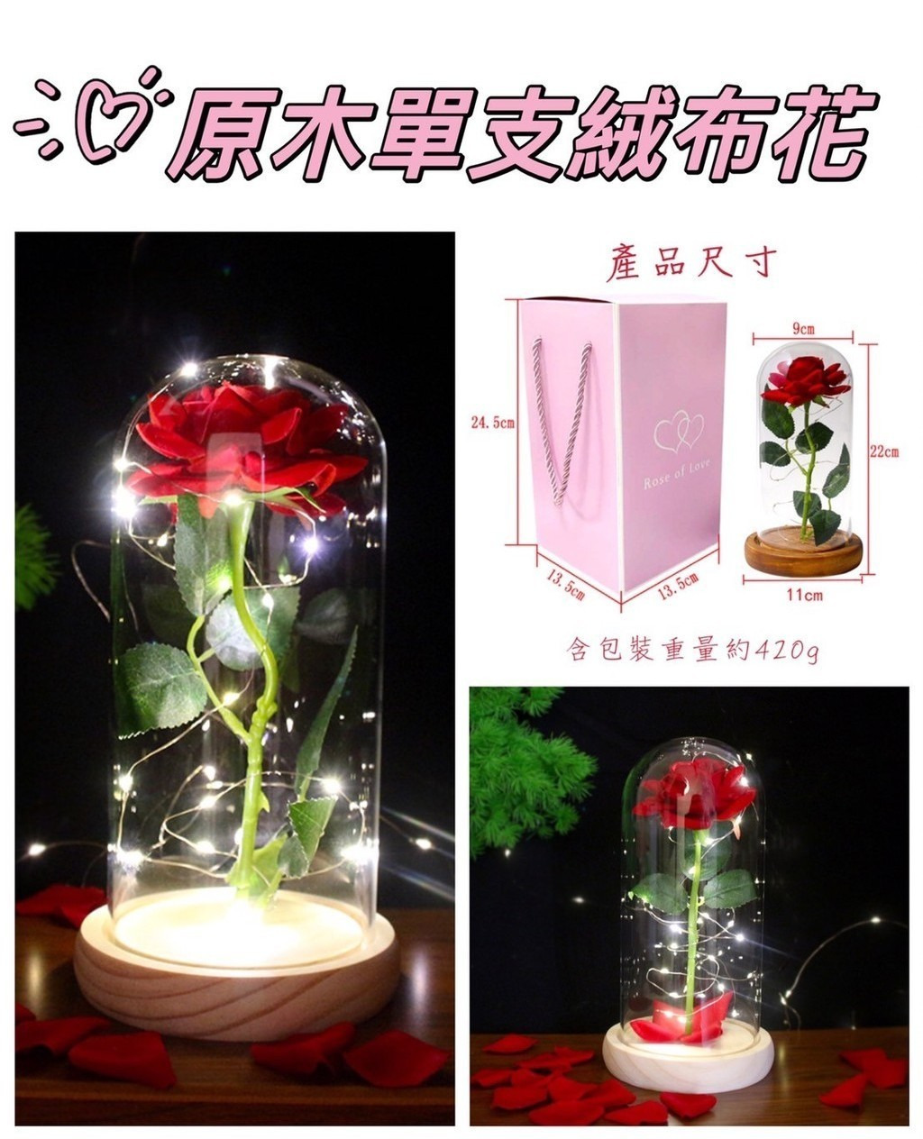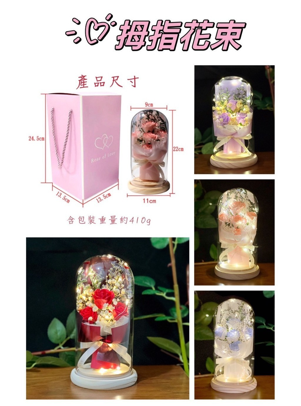 商品名稱:玻璃鐘罩花(LED燈)