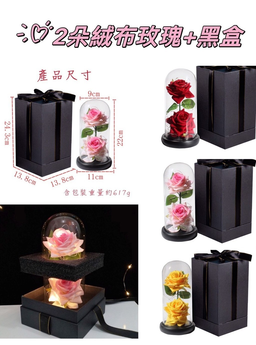 👉🏻2朵絨布玫瑰+黑盒