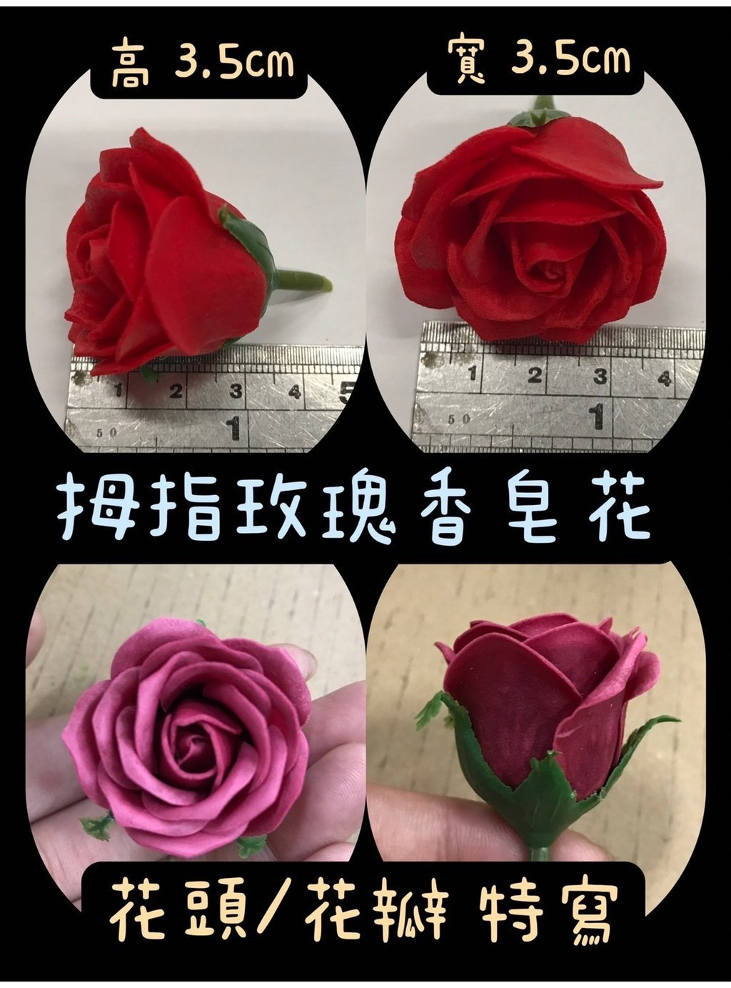 商品名稱:(1朵)拇指玫瑰香皂花 / 迷你香皂花商品規格:直徑3.5cm/高3.5cm花朵因物流配送有可能造成擠壓壓傷,可自行調整唷~🙏🏻可接受再購買🙏🏻因手工測量會有0.5-1cm差異如需大量購買歡迎聊聊私訊唷~
