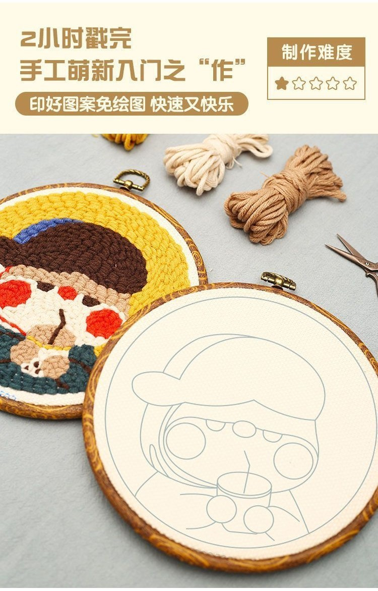 尺寸:繡框尺寸約20*20CM (附贈刺繡框) 材質:8股毛線、亞麻布、塑膠繡棚(金屬螺絲)、圖紙 說明:附贈詳細圖紙與影片教學 , 新手易上手注意事項:1.DIY手工材料包 , 需要自行製作2.非供14歲以下兒童或幼兒玩耍使用