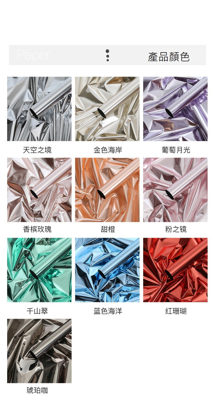 ⚠️本賣場有另售『整包』專區⚠️如需大量購買的可以到整包專區選購唷~~~▪️尺寸:58*58cm / 1張▪️材質:PP塑料,鏡面紙 ( 防水 )因超商包裹尺寸限制,所以出貨時會對折,介意者可以選擇宅配唷~超商重量限制5kg,包裝紙限購「12包」▪️可放使用於禮品包裝、花束包裝 使用之包裝紙🎁