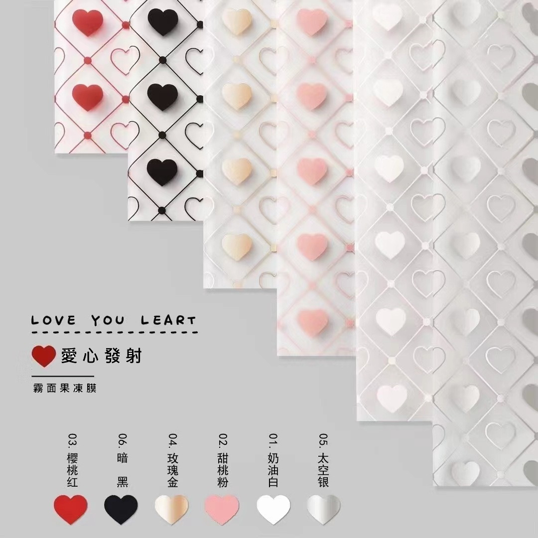 【531禮物網】(單張)愛心發射霧面果凍包裝紙 禮物包裝紙 花束包裝紙 禮品包裝紙 花藝包裝 手作材料 DIY防水包裝紙