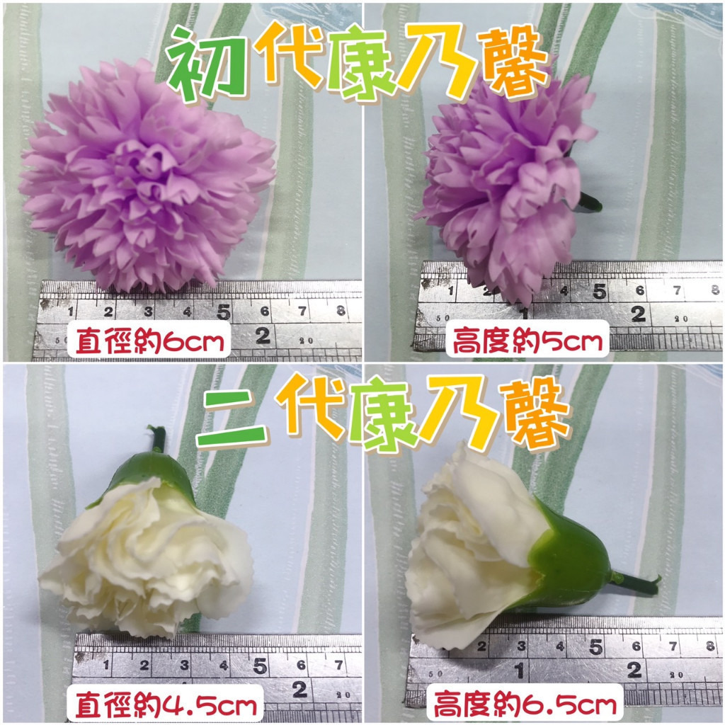 商品名稱:康乃馨香皂花(1朵)商品規格:初代康乃馨 直徑約 6cm x 高度約 5cm二代康乃馨 直徑約 4.5cm x 高度約 6.5cm(未開花)二代康乃馨 直徑約 6cm x 高度約 6.5cm(開花後)⚠️花朵因物流配送有可能造成擠壓壓傷,可自行調整唷~⚠️使用16號鐵絲當花桿的話,記得搭配花藝膠帶使用,才能讓花朵更穩固唷~因手工測量會有0.5-1cm差異🙏🏻請確認好再購買🙏🏻