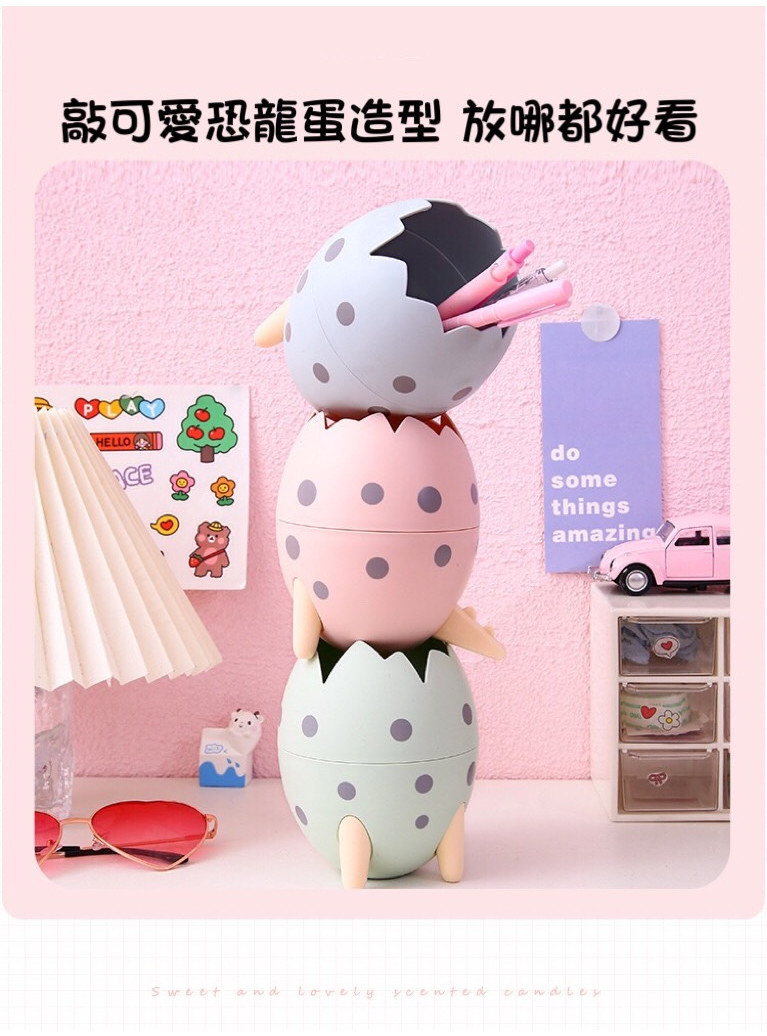 【531禮物網】恐龍蛋筆筒 收納筒 筆筒 桌面收納盒 雜物收納 化妝品收納 文具收納 辦公桌收納 三腳架筆筒收納籃