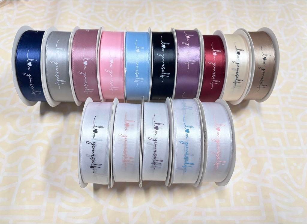 ⚠️本賣場有另售『100cm』專區⚠️如需少量購買的可以到100cm專區選購唷~~~💖商品名稱﹔愛自己緞帶(整捲/100cm)💖商品尺寸﹔寬 2.5 cm,長 約25碼 (約2200cm)💖材質:織帶