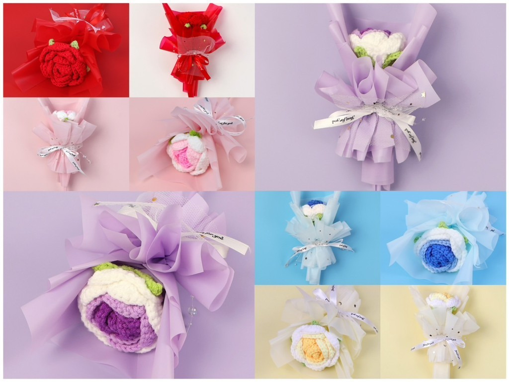 【531禮物網】(成品) 仙女棒花束小仙女棒玫瑰花束 針織仙女棒花束 針織花 迷你花束 毛線玫瑰花束 毛線花束