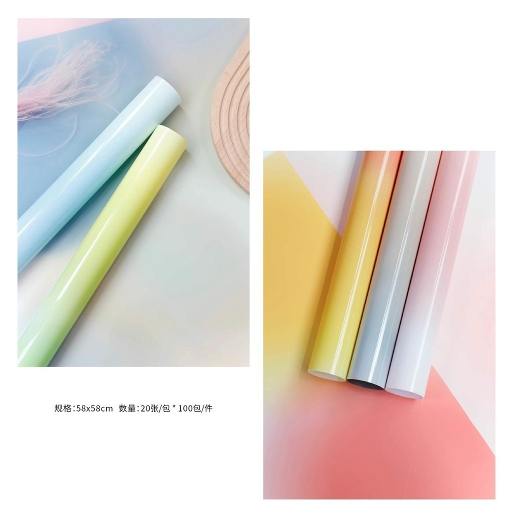 ⚠️本賣場有另售『單張』專區⚠️如需少量購買的可以到單張專區選購唷~~~▪️▪️尺寸:58 x58cm / 1包 20張材質:OPP 4.5絲(微透) 防水:100%因超商包裹尺寸限制,所以出貨時會對折,介意者可以選擇宅配唷~超商重量限制5kg,包裝紙限購「12包」▪️可放使用於禮品包裝、花束包裝 使用之包裝紙🎁
