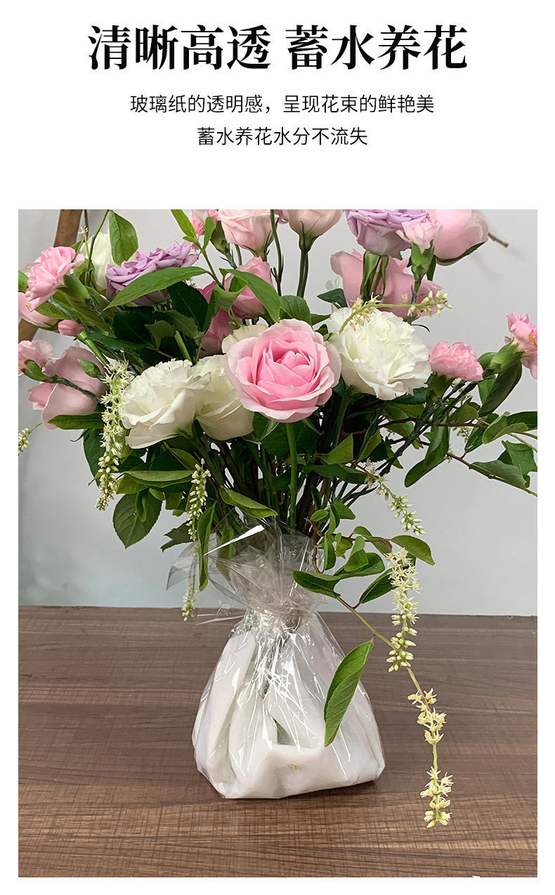小花束打底/保水包裝建議使用50U;花束外圍透明紙建議使用70U;