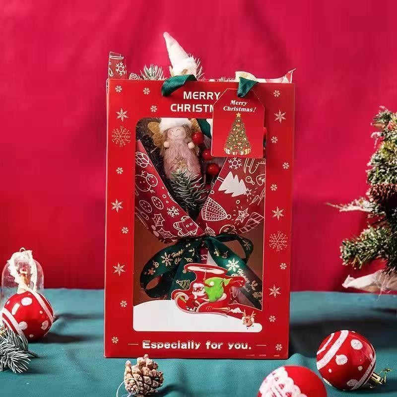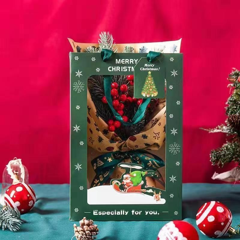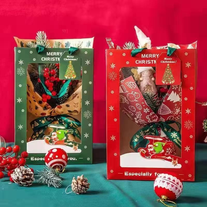 【531禮物網】聖誕開窗手提袋 耶誕透明櫥窗手提袋 聖誕網紅鮮花禮品包裝袋 花束手提袋開窗 開窗提袋 手提袋 禮物