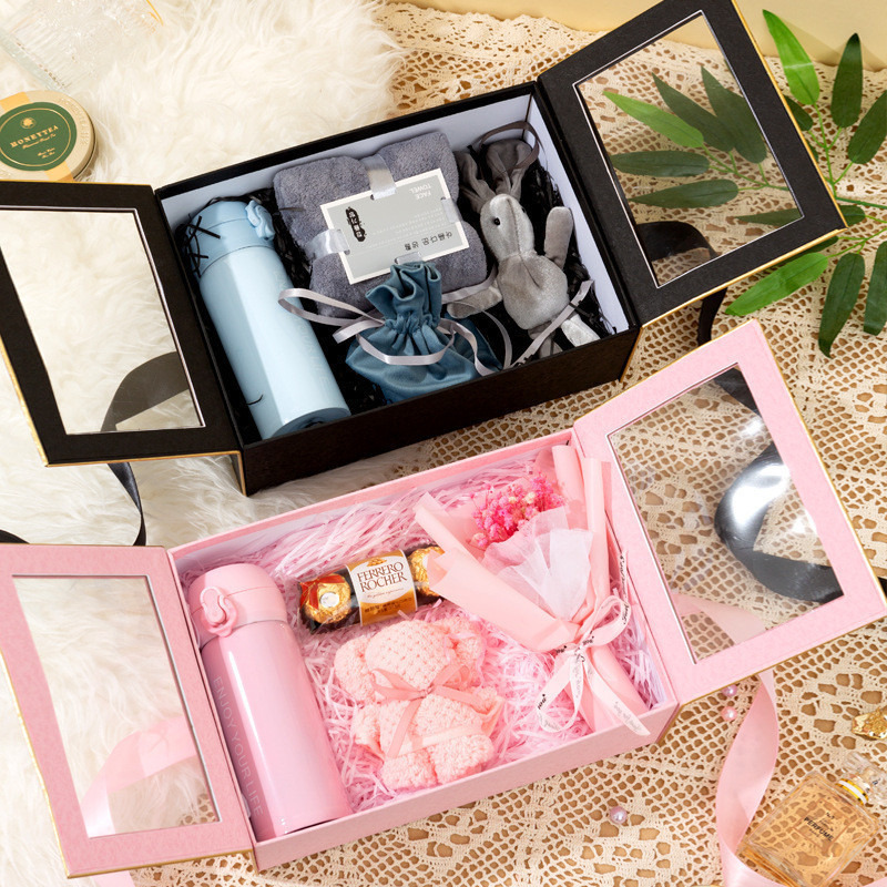 【531禮物網】金邊緞帶開窗禮物盒 禮物盒 禮品袋 生日禮物盒 情人節 禮品包裝盒 黑色禮物盒 空盒 聖誕節禮物盒