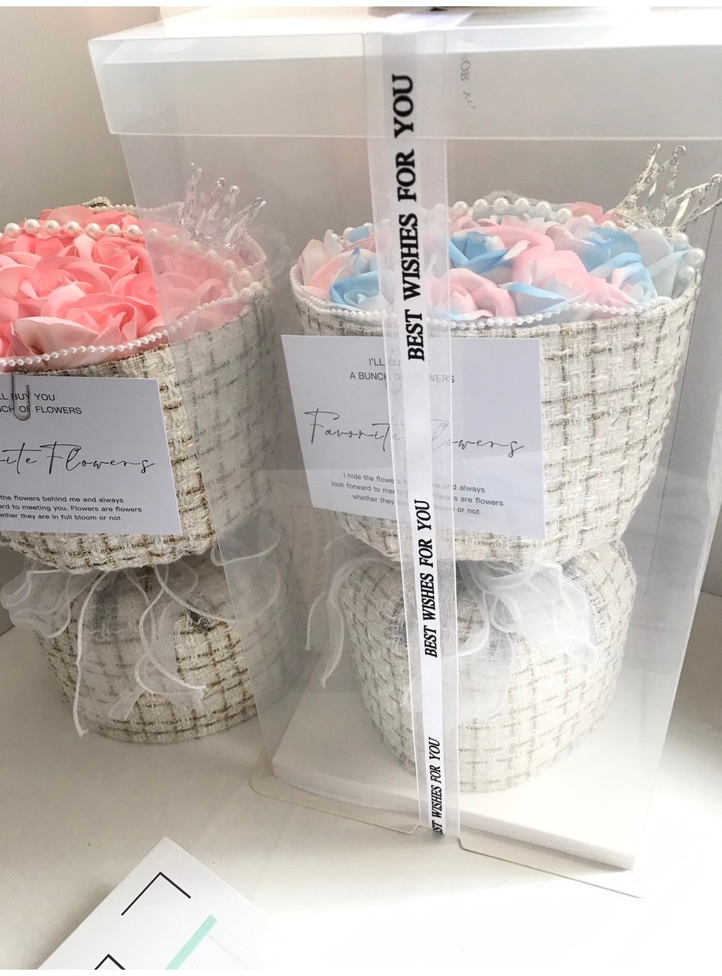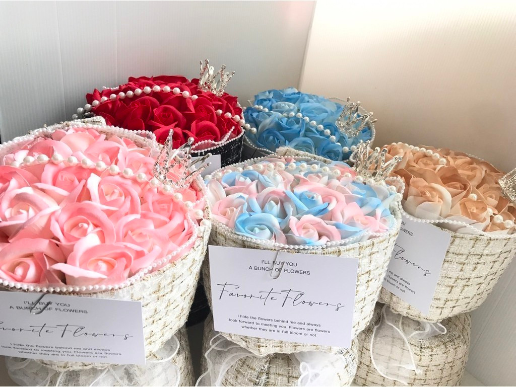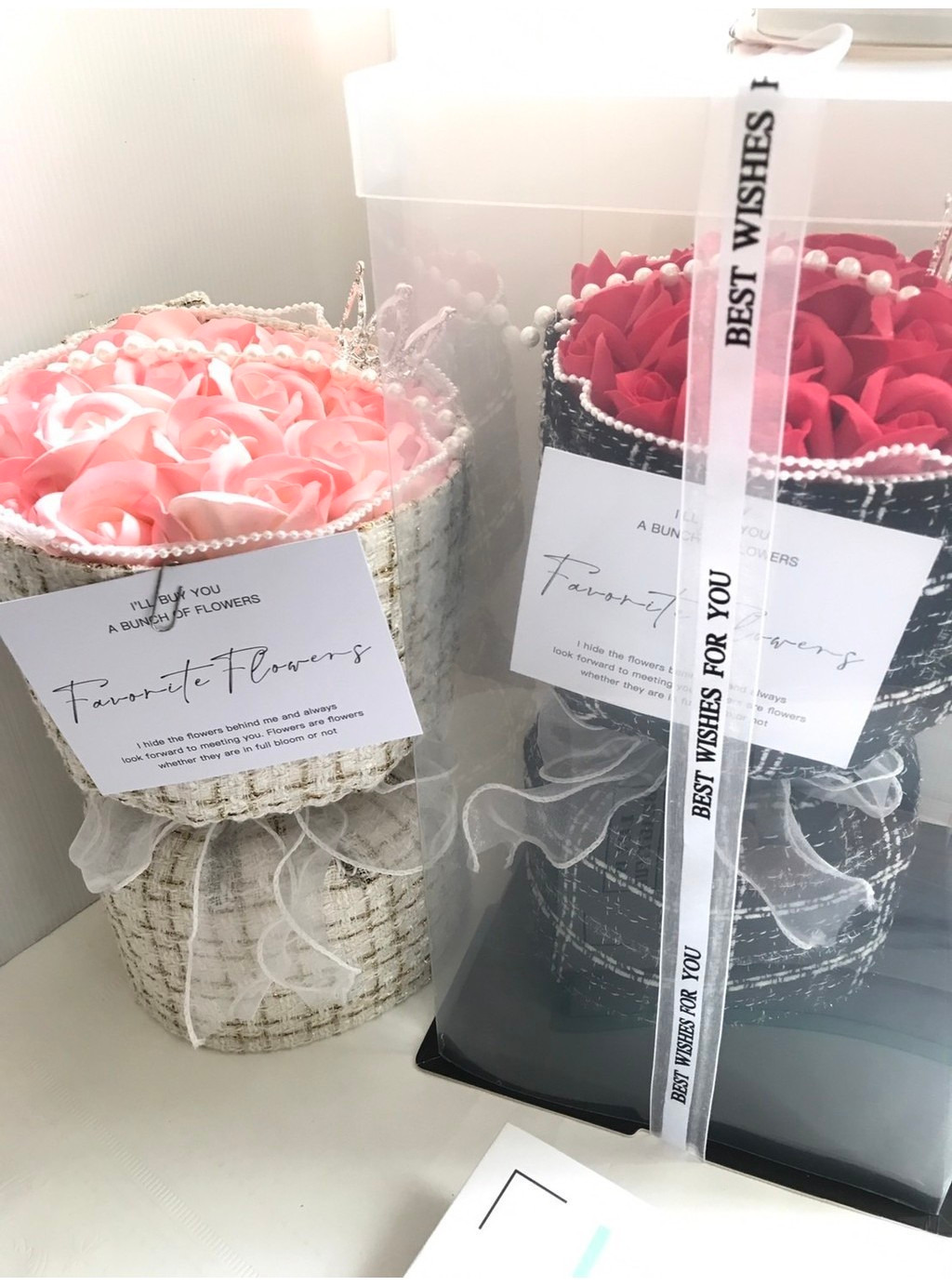 💡商品名稱:21朵小香風玫瑰花束💡商品尺寸:花束 直徑約 20 x 高 33 cm禮盒 21.5 x 21.5 x 40 cm💡商品內容:花束.氣氛燈.禮盒.緞帶 (禮盒內外記得撕膜唷~}💡花朵數量:21朵⚠️超商運送,避免擠壓,限購【1組】。 如遇變形可自行為調整即可💡商品名稱:14朵小香風玫瑰花束💡商品尺寸:花束 直徑約 17 x 高 30 cm禮盒 17 x 17 x 35 cm💡商品內容:花束.氣氛燈.禮盒💡花朵數量:14朵