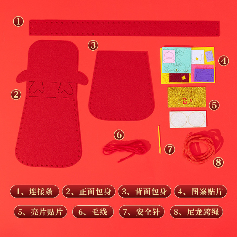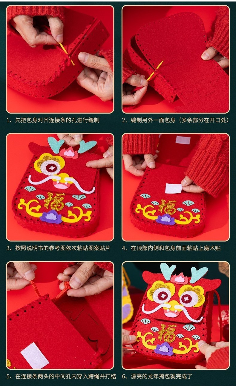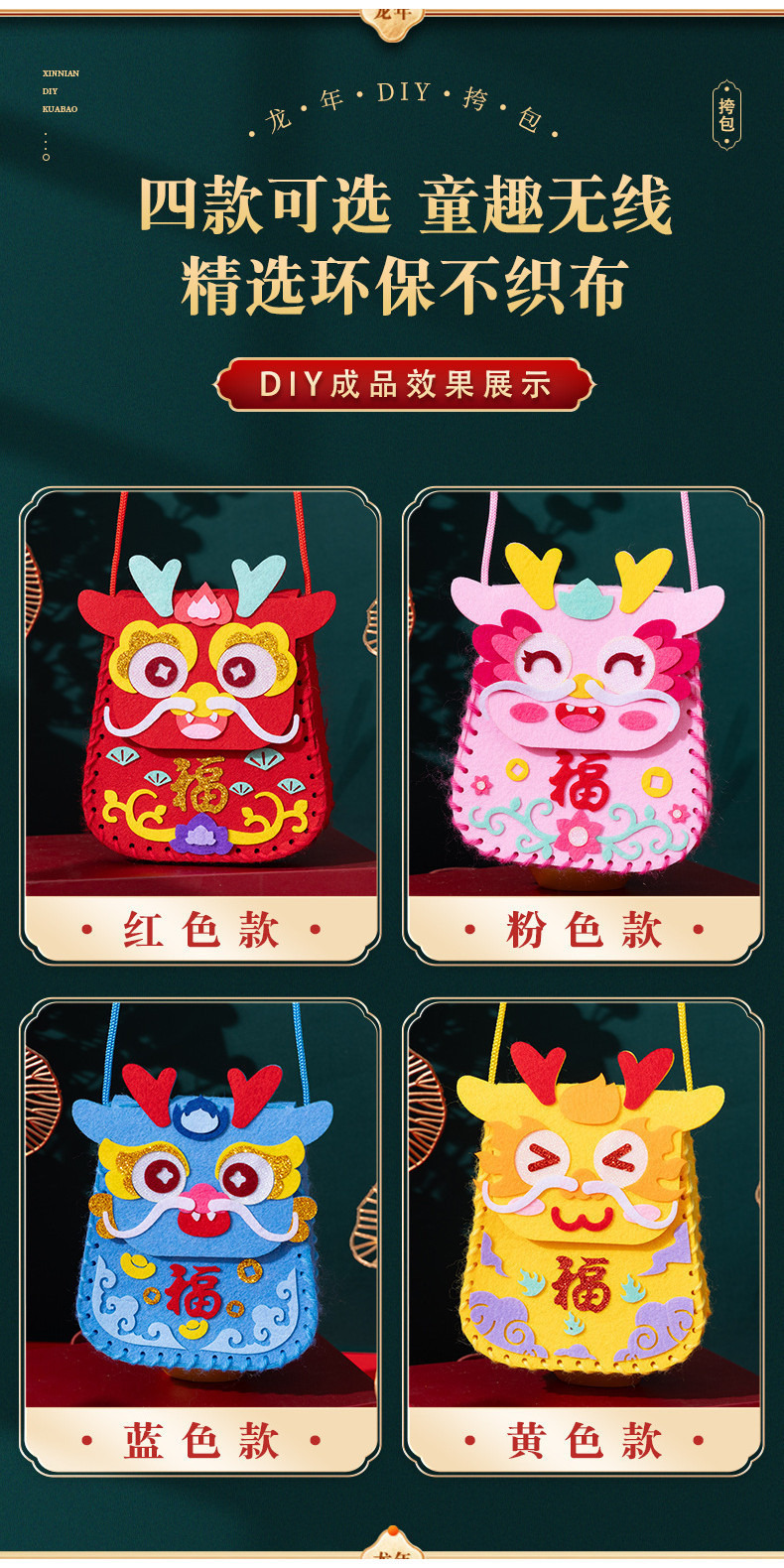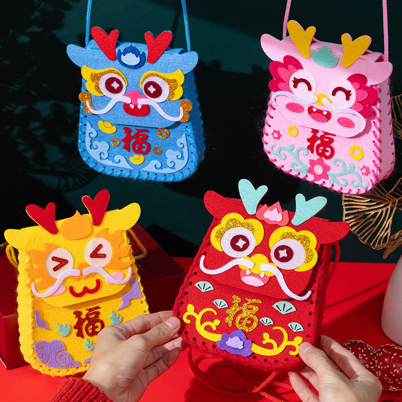 【531禮物網】DIY新年福袋(不織布) 手作材料包 紅包袋 龍年 過年 包包 福袋 立體 福龍包 小方包