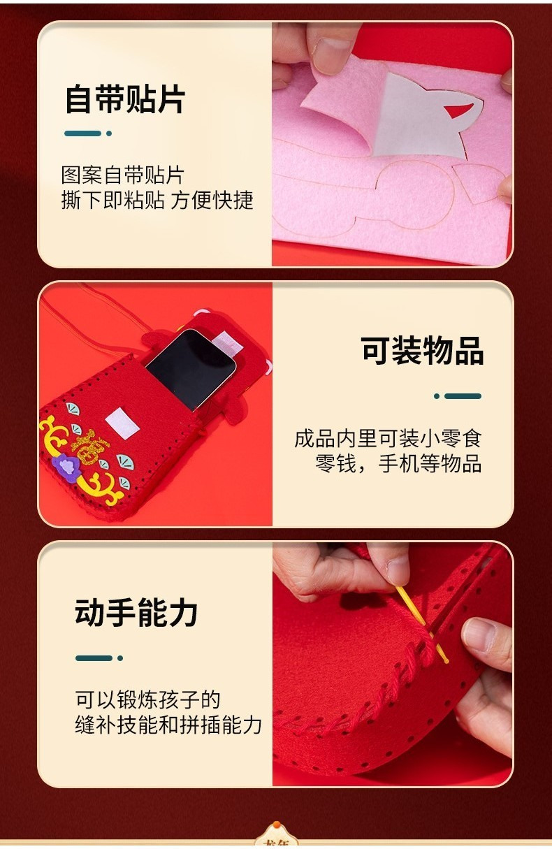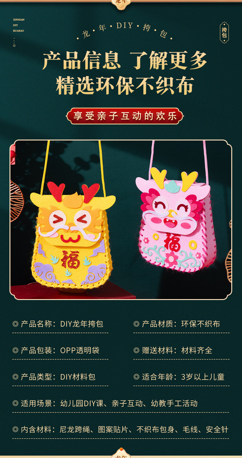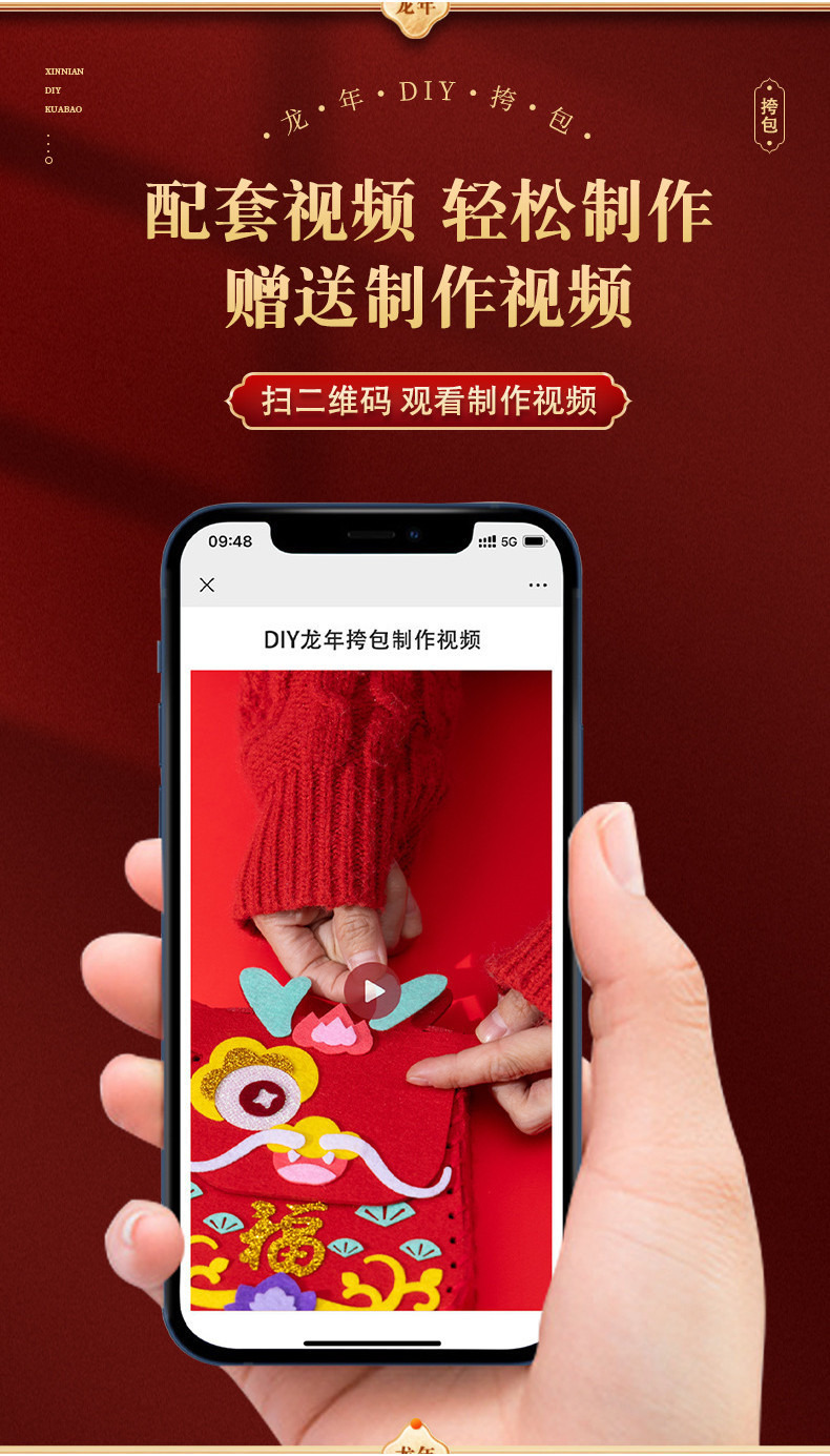 【531禮物網】DIY新年福袋(不織布) 手作材料包 紅包袋 龍年 過年 包包 福袋 立體 福龍包 小方包